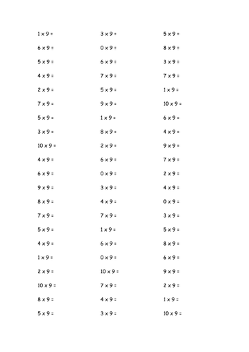 Times Tables Practise Sheets Teaching Resources